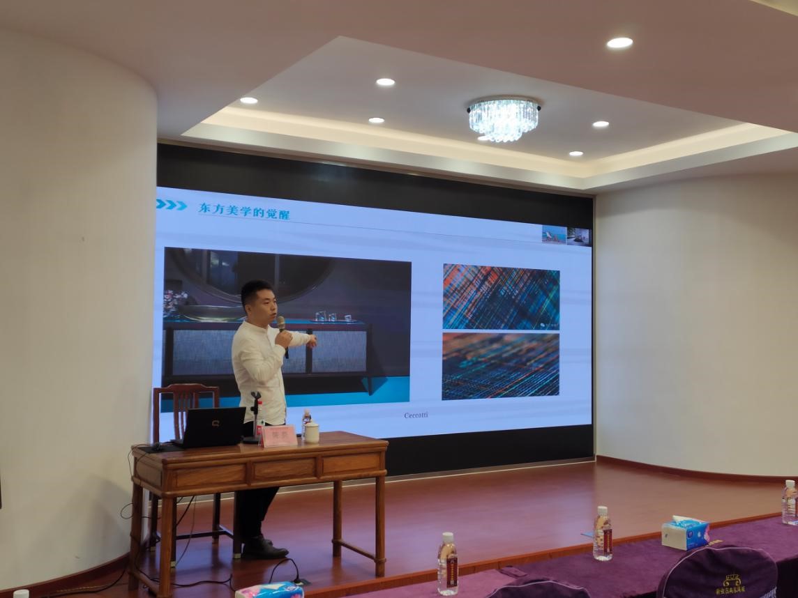 本次培訓(xùn)為期兩天,主要以課堂授課與外出設(shè)計(jì)考察為主。張?zhí)煨遣┦俊㈥愓褚娓苯淌诤完惲晾蠋煼謩e圍繞“中國(guó)傳統(tǒng)家具中的造物理念體系”、“當(dāng)代中式家具發(fā)展趨勢(shì)及品牌構(gòu)建”、“當(dāng)代中國(guó)家具設(shè)計(jì)方法”等專業(yè)課題作了課堂授課,實(shí)踐考察環(huán)節(jié)前往佛山羅浮宮國(guó)家家具博覽中心進(jìn)行了考察。