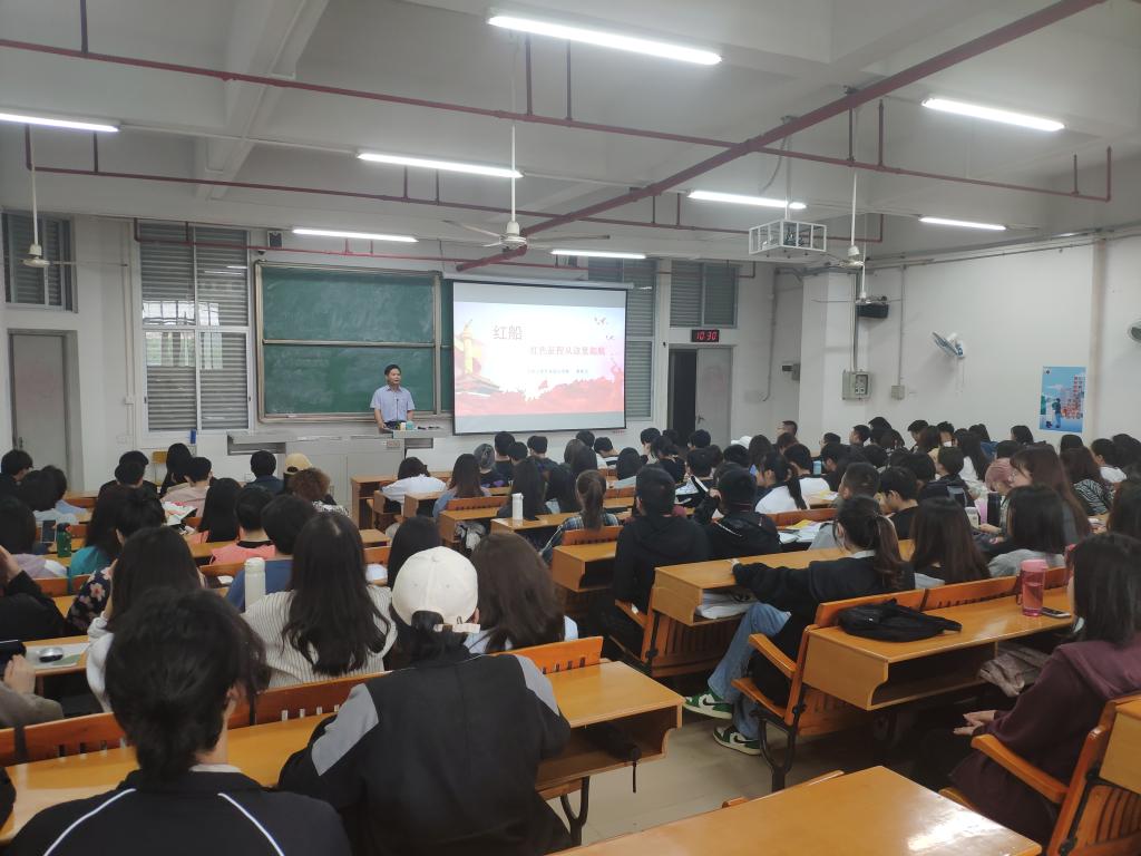 4月9日上午,在北主樓202課室,黨總支書記黃章文在新學期第一堂思政課上以“紅船,紅色征程從這里起航”為主題,講述了中共“一大”在上海和嘉興南湖紅船召開的歷史背景、重大意義等。講述了中國共產黨在不同歷史時期形成的紅船精神、井岡山精神、長征精神、抗美援朝精神、抗震救災精神、偉大抗疫精神,讓同學們領悟中國共產黨精神譜系的內核實質。并以“紅船精神”的精神內涵為主線,向同學們重點講述了“開天辟地、敢為人先”的首創精神、“堅定理想、百折不撓”的奮斗精神、“立黨為公、忠誠為民”的奉獻精神是“紅船精神”回答中國共產黨為什么“能”的金鑰匙問題。最后希望同學們傳承和弘揚“紅船精神”,繼承革命紅色精神,用實際行動來踐行革命先輩們的奉獻精神,自覺增強“四個意識”、堅定“四個自信”、做到“兩個維護”,以優異成績迎接建黨一百周年。