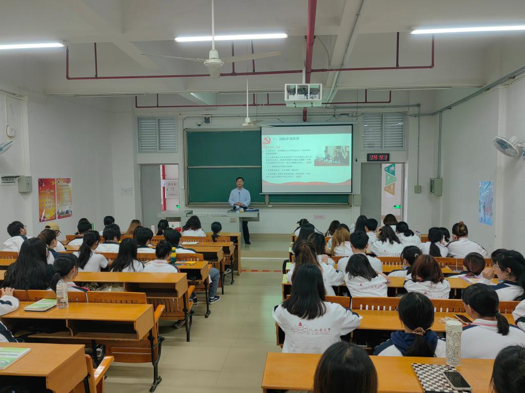 3月14日,在北主樓603教室,黨總支書記黃章文在第一堂思想政治理論課上以“我國周邊軍事安全形勢與新時代大學生國家軍事安全教育”為主題進行了授課,分析了我國周邊軍事安全形勢,帶領同學們學習了習近平總書記關于軍事安全的重要講話精神和《中共中央關于黨的百年奮斗重大成就和歷史經驗的決議》關于國防和軍隊建設、維護國家安全的相關內容,并向同學們講解了新時代國家軍事安全的基本內涵、主要內容和面臨的威脅與挑戰。他強調,新時代大學生應牢固樹立國家軍事安全意識,自覺保守國家軍事安全秘密,踐行維護國家軍事安全的使命擔當。希望同學們立鴻鵠志,做奮斗者,自覺維護國家軍事安全,增強“四個意識”、堅定“四個自信”、做到“兩個維護”。