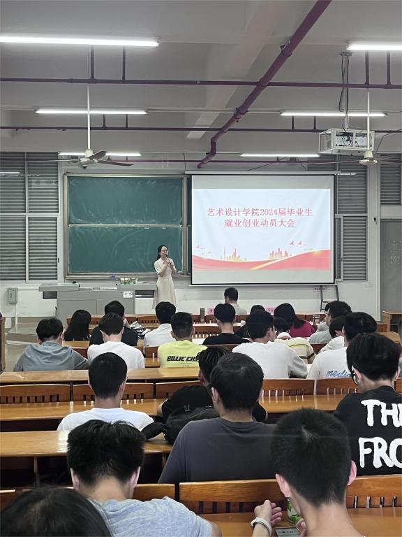 為更好推進(jìn)畢業(yè)生就業(yè)工作,9月21日,藝術(shù)設(shè)計(jì)學(xué)院召開(kāi)了2024屆畢業(yè)生就業(yè)創(chuàng)業(yè)動(dòng)員大會(huì),為同學(xué)們分析目前就業(yè)形勢(shì),提振就業(yè)信心,促進(jìn)畢業(yè)生高質(zhì)量充分就業(yè)。學(xué)院班子成員、畢業(yè)班班導(dǎo)師、輔導(dǎo)員及2024屆畢業(yè)生參加了會(huì)議。