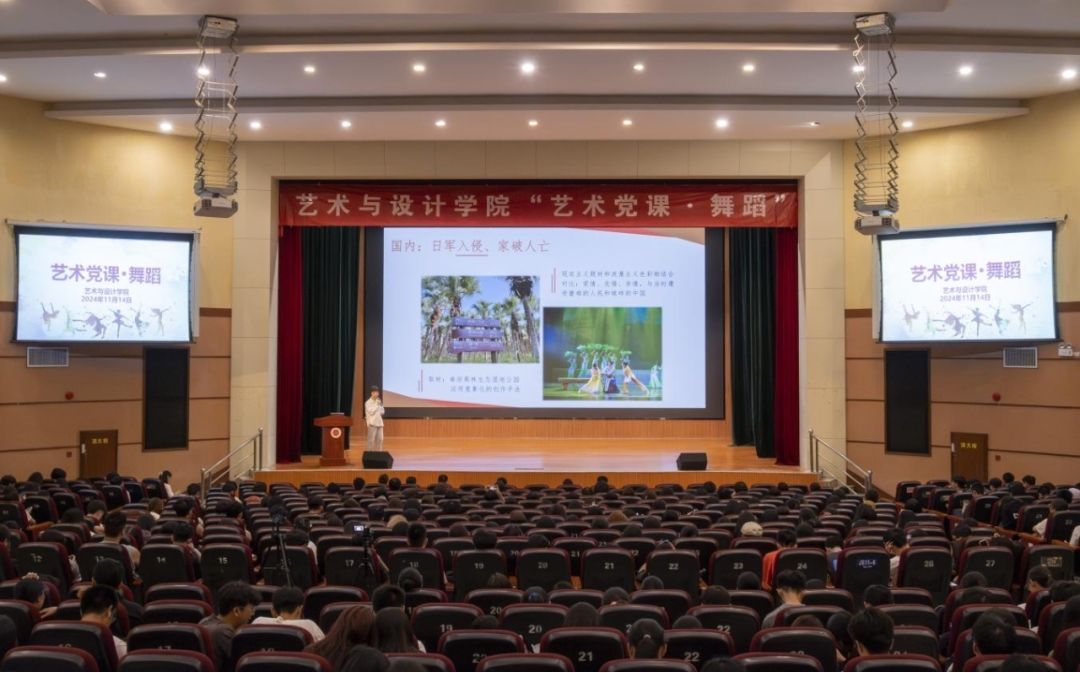 11月14日,藝術與設計學院在呂志和禮堂舉行“藝術黨課·舞蹈”。校黨委宣傳部常務副部長何亞宏,學生工作部部長、學生處處長羅丹,校團委書記許炳佳,藝術與設計學院黨委書記楊玉豪、副書記韋金艷、副院長王漢友、肖勁蓉及師生代表等600多人參加了黨課。黨課由韋金艷主持,舞蹈系賈國強、張友元老師主創主講。